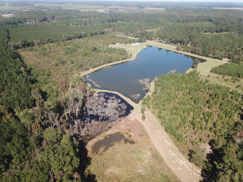 This super nice 52 acre tract is located just South of Wadley on the Wadley Coleman Lake Road (county maintained paved with 1750 feet of road frontage). The property boast a well maintained fully stocked (bass, crappie, bream and catfish) 10 acre lake with an additional 2.5 acre duck pond that is also stocked. There is a 1999 well maintained manufactured home on a permanent foundation overlooking the lake with a nice dock just out the front door. The 1800 square foot home has 4 bedrooms, 2 baths with a large open floor plan living area and fireplace. The balance of the property is mostly wooded with planted pines.
