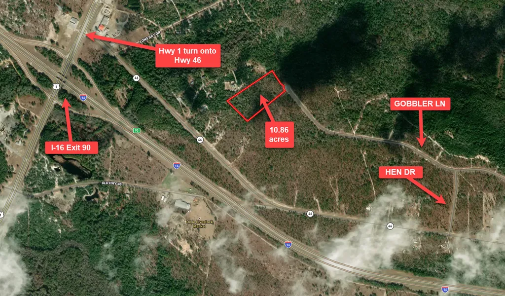 Research Parcel InformationDRIVING INSTRUCTIONS: Coming from Interstate -16, take Exit 90 and go north on Hwy 1 to GA 46 travel approximately 1 miles to Hen Dr. and go left when you reach Gobbler Ln. The property is located at the end of the cul-de-sac. (see pictures)