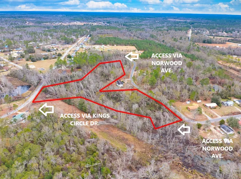 This exceptional 5.25-acre wooded parcel represents a rare opportunity within Swainsboro city limits. Featuring an attractive blend of hardwoods and pines, this versatile property offers three-road frontage along Norwood Avenue and Kings Circle Drive, providing outstanding accessibility and development potential.