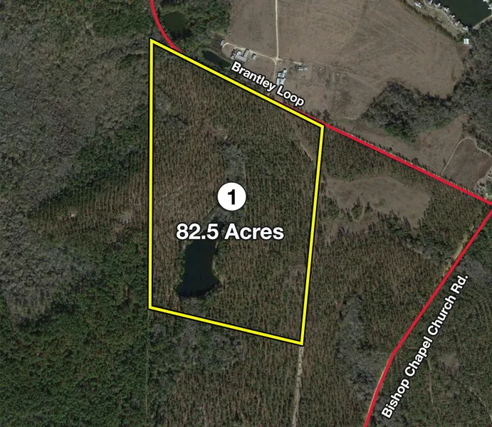 This is Tract 1 of the Old Magnolia Land auction offered by South Auction. Tract 1 is 82.5 Acres with a 5 acre lake.