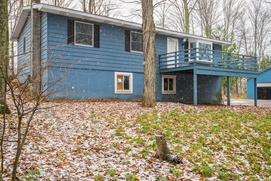 Excellent opportunity for this raised ranch on 2 wooded acres just four miles out of town. Home sits back from road and features a 24 x 30 pole barn, front and rear decks, and full lower level walkout ready to be finished. Some recent upgrades to sliding door, bay window, interior paint, re-roofed approximately 10 years ago, and a new well pump.