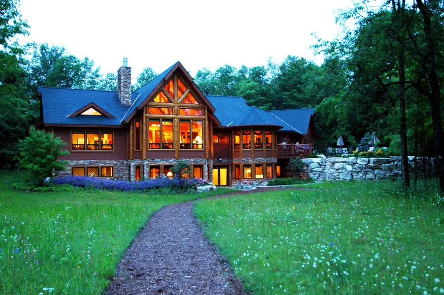 This spectacular home is on two lots of over 2 acres overlooking the 18th fairway of the Arthur Hills Golf Course at The Highlands of Harbor Springs. A short walk to the Country Club and a short drive from the ski hills, yet surrounded by lush landscaping which includes beautiful patios, stone steps and walls and a beautiful stone spa/hot tub which can function as a pool in the summer months. custom, timed landscape lighting and irrigation in place. Copper gutters/downspouts. The circular drive and set back of the home allows for maximum privacy yet close to all the amenities at The Highlands of Harbor Springs. The interior is rustic yet elegant with high ceilings and large windows overlooking the golf course. A large gourmet kitchen with marble countertops, Dacor appliances and stone fireplace makes it an ideal place to entertain. The main floor has a private master suite with fireplace, large custom- built closet and a magnificent bathroom. The main floor also offers a guest room with private bath and access to the outside deck. The large back entrance has built in bench for ease of ski boot removal. A few steps up from the living room is the upper loft which works as an office or cozy den overlooking the living room and golf course. A bonus room off the loft is finished for storage. The lower walk-out has a large family room with wall to wall built ins and an additional fireplace. There is plenty of room to entertain and a sink and refrigerator are built in for easy access. The lower level walk out has two more guest bedrooms both with private baths, an exercise room with floor to ceiling mirrors and large cedar closet. A small wine room is off the exercise room. An additional room on the lower level, originally designed for golf practice, is currently used as a beautiful, large office. The entire lower level has in-floor heating. alarm, Lutron lighting, speaker and central vac systems throughout.