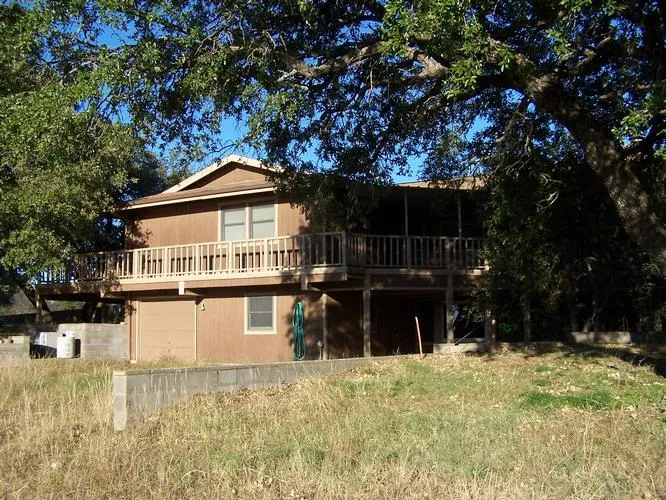 Your own Private Retreat. Virgin land with beautiful walk out basement home overlooking 25 acre lake stocked with fish. 208 Acres of native grasses and hardwoods. Abundant game! Home has 4 bedrooms upstairs and huge room and 1 bedroom downstairs. The upstairs appears ground level from the road, and the bottom is a walk out basement. Fireplace up and down stairs. Safe room could be a wine cellar, large workroom off of game room that also looks over the lake. Decking surrounds the back of home, and there is a carport off the back of home and a side entry garage also. Large kitchen is a cook's delight. Updated granite countertops, breakfast nook and a formal dining area. Hot tub in master suite needs repair. This property is secluded and quiet.
