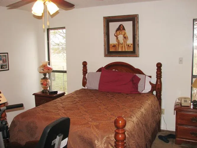 Reduced! 2,174 SF, 3/2 home on 40 acres. This one of the best homes on small acreage we've seen in a long time! Pride of ownership is obvious when you look at the well-maintained home and the well-cared-for acreage. House has new metal roof, septic system, stove top, French doors, tile floors and kitchen counter tops. Exterior fencing is six strand barb wire and in excellent condition. The yard sprinkler system and the electric gate are recently installed. Out buildings include two storage sheds, equipment storage building, carport and stall/feed & tack room. A windmill, a Trinity water well and one stock tank provide excellent water resources. Also included are a cyclone fenced garden area and a chicken coop. Spectacular views for miles to the south. Selling with minerals.