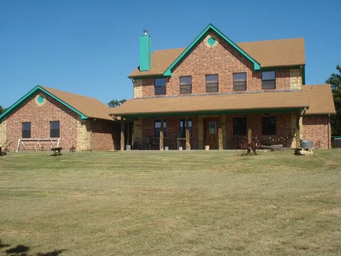 Secluded custom built home on 38.54 acres. Home offers open kitchen, living, dining. Wonderful kitchen with island, breakfast bar, tons of counterspace and a beautiful stained glass looking out to property. Isolated master suite, bath tub, separate shower and double sinks. Second story offers hard wood and tile floors, three bedrooms, two full baths and a game room. Custom window coverings and tons of storage. This home is perfect for a growing family. Full length porch across the front of this home, very nice views, large concrete back patio, fenced yard and oversized garage. 38.54 acres with plenty of trees and cover for wild life, a 30x50 barn for storage, cattle pens with water and good fences. This is a beautiful property.