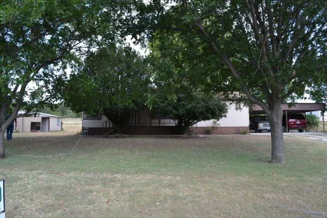 3-2 Doublewide on 2 acres. Home offers split bedrooms, spacious living room, dining area, breakfast bar and good closet space. Covered porches on front and back, fenced yard, 2 car carport, trees including pecan, pear, plum and peach. Concrete storm cellar and storage building.