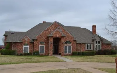 In northwest Stephenville, amid impressive decorative iron fencing with brick pillars, is a manicured 1.210 acre corner lot with a gazebo where you can sit and listen to songbirds and relax the days stresses away. Sounds pleasant, doesn't it? That's only the beginning of the beauty of this property. Beyond the circular drive sits a spacious contemporary brick 3-bedroom, 2 bath home. As you enter through the leaded glass door, you notice the espresso-finish crown molding & doors that lead to the study (left) and formal dining (right). The view ahead is of the living room with a trio of arched windows on the far side that face the back yard. The built-in home entertainment center features the wood-burning fireplace in the middle, where the owners have their television mounted above. The shelving units on either side are shaped in arches to complement the windows, and have a deep, rich red ...
