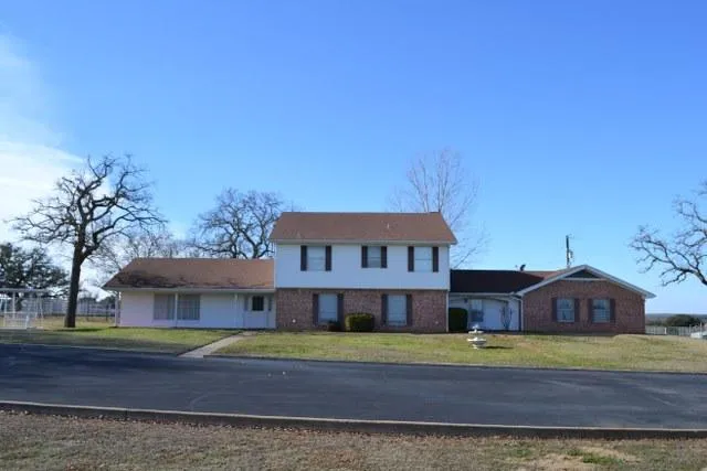 Brick 2-story 5-bedroom, 6-full bath home on 25.60 acres, set back off the road with a paved circular driveway. Home is well-built, and includes ample storage, built-ins and great use of spaace. Property is fenced and includes 2 traps, shed row barn with stalls, covered trailer parking, and working pens. A brick 1-bedroom, 1-bath apartment is behind the home that would be ideal for a college student, mother-in-law, or for use as a rental. Located on S Hwy 281 with county road frontage.