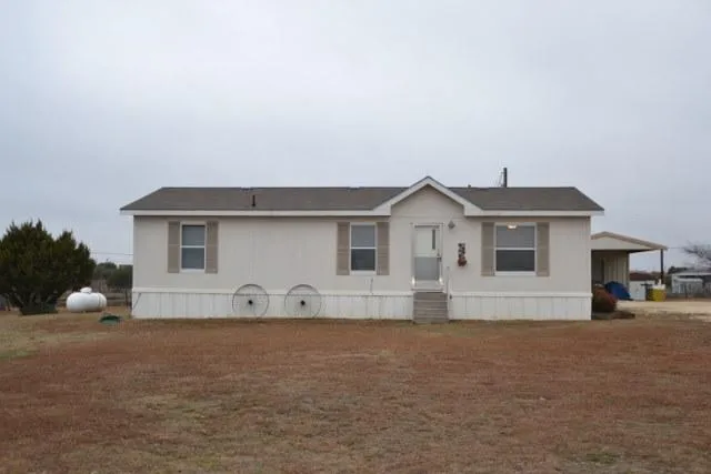 This residence is a 1,056 square foot, 3/2 doublewide manufactured home is a quaint and provides just enough for a young family or one that may be retiring. The front door opens to the living room, which features carpeting and vaulted ceilings. The living room is open to the dining room and kitchen via a breakfast bar to the kitchen. This kitchen features a gas stove, and dishwasher. The utility room is located beyond the kitchen and the back door is located here. The three bedrooms are located down a carpeted hallway. Each of the bedrooms are also carpeted and are of an adequate size. The master bedroom features a private bathroom with a full tub and shower combo. Overall, this cozy home would be adequate for any small family!