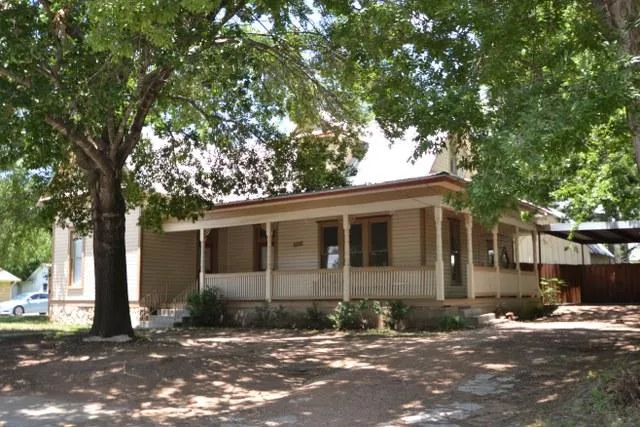 Southern hospitality radiates from this 4 bedroom, 2 bathroom early American style home. Located on a corner lot with a large backyard and encased with privacy fencing, this one is perfect for pets and is spotted with trees. It offers a corner wrap around covered porch, great for relaxing in the outdoors and a storage building for extra space as needed. Constructive updates have recently been applied that boost this antique home's status while preserving its appeal. A spacious formal dining room with protective wainescotting serves as a primary attraction. The kitchen exhibits a unique diamond shaped window along with open face, wood glass cabinets. Additionally, a comforting wood burning fireplace is found in the cozy living area. As you travel up the stairs of this charming home, you will find 2 bedrooms, a full bath, and a bonus room excellent for leisure time. The upstairs bedrooms are perfectly suited for children with a fun atmosphere due to the triangular shaped ceilings. Desirable hardwood floors are found throughout the home with the first floor being accommodated with 9ft ceilings. Being situated closely to the university and in the heart of Stephenville makes this home a must see!
