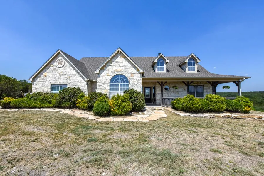 Custom rock home on 5 acres with panoramic Mountain Lake views. Enjoy every sunset & sunrise from the comfort of your covered porches. This 3 bed, 2 bath home offers an open concept, split bedroom arrangement with soaring cathedral ceilings. Incredibly efficient floor plan offering the flexibility of a home office, alongside an eat-in kitchen with dining area, & breakfast bar. Home features tremendous updates throughout; granite, wood-look tile, stainless steel appliances, & custom painted cabinets. Generous master suite with his & hers walk in closets. Located between Granbury and Stephenville, Mountain Lakes offers amazing HOA amenities; 2 lakes, boat docks, park, RV Park, Clubhouse, swimming pool, & more!