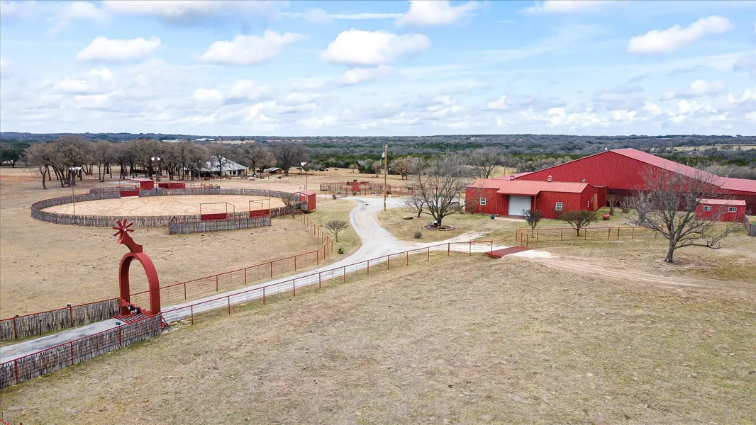 This 167-acre ranch in Central Texas is definitely one you don't want to miss out on. This place is a cutting horseman's dream with over 14400 sq ft indoor arena with extra living quarters and fully equipped horse stalls, washing rack. A large alley separates the stalls from another large enclosed storage for tack, feed, room for tractor, buggies or anything you want to store inside with easy access with roll up doors. Right outside the barn is 150 ft. diameter round pen, horse walker and cattle hold pen with squeeze shoot for working cattle. The land is great for everything including just relaxing and enjoying the wildlife. The property backs up to the beautiful Duffau Creek. The beautiful 3 bedroom 2.5 bath home with salt water swimming pool and outdoor grill is very inviting and perfect for life on the ranch. The home features gorgeous woodwork throughout and plenty of room for enjoying company. Lots of extras to be included.