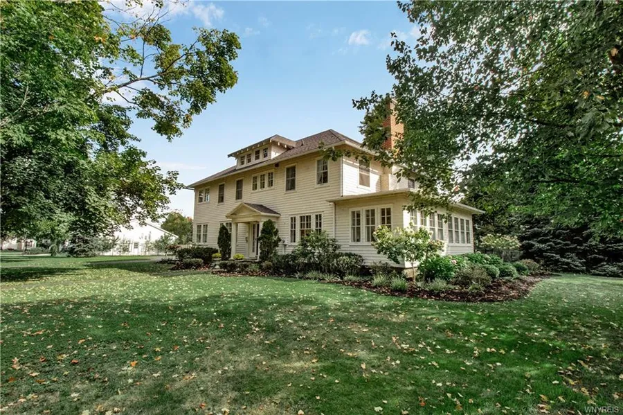 Own a piece of EA history stately colonial on 1 acre lot in desirable EA Village! Walk to all village amenities. 1st floor feat. beautiful foyer, formal dining rm, office, living rm & sunrm. 2nd floor feat. master suite, 3 addl bedrooms- ea w/generous closets & 2 addl rooms. 3rd floor provides an addl bedroom, full bath w/2 unfinished attic spaces. Storage/French doors/Leaded glass/built-ins throughout. 3 working fireplaces. Basement could easily be finished. Updates: Wallpaper removed, historical details restored, fresh paint throughout. New fully fenced yard w/fresh landscaping. New appliances in kitchen, several new light fixtures & faucets. New plumbing in upper bath, new boiler, HWT 2012, electric updated to 200 amp & 50 amp in garage w/new overhead door & flagstone patio behind.