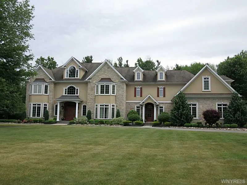 Spectacular architectural details thruout this Zubin built home nestled on over 3 acres of impeccably landscaped grounds. Exquisite stone & drivit exterior. Sprawling interior w/sweeping staircase in the two story foyer. Fr w/coffered ceiling & gas fireplace. Frml DR w/hrdwd flring, crown mldg & butler's pantry. Kit w/island, granite counters, brkfst bar & opens to year round sun room w/cath ceiling & gas fireplace. Office w/custom cabinetry. Mstr suite w/fireplace, sitting rm, 2 walk-in closets & balcony w/slate flr & overlooks gunite pool, spa & patios. Two staircases, 2nd flr laundry. Heated mstrbath & kitchen flrs. Bsmt w/2 staircases & plumbed for bath. Viking appliances. Three furnaces & A/C units.