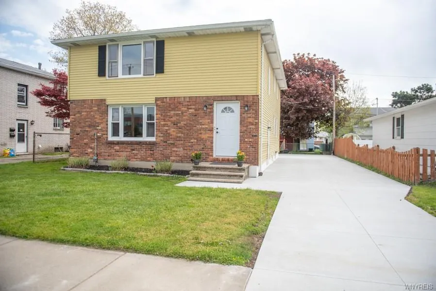 This sensational 2 unit is worthy of being "owner occupied" and let tenant $'s pay your expenses! Brand new $14,000 double wide concrete driveway for ease of parking! Freshly painted the entire interior including huge bsmt w/ long wall of storage shelves, glass block windows, separate laundry rooms. Both units have lovely remodeled ceramic bathrooms w/ bright white vanities. Textured carpets in Liv Rm & 3 bdrm-each floor. Replacement vinyl windows, new vinyl grey planking floor in hallway, new exterior doors. Roof 2011, exterior is brick & vinyl sided. Shed provides outside storage, nice size patio. Super convenient to near by thruway, lovely area of fine homes! Separate meters & mechanics. Negotiations 5/24/21 At 5PM.