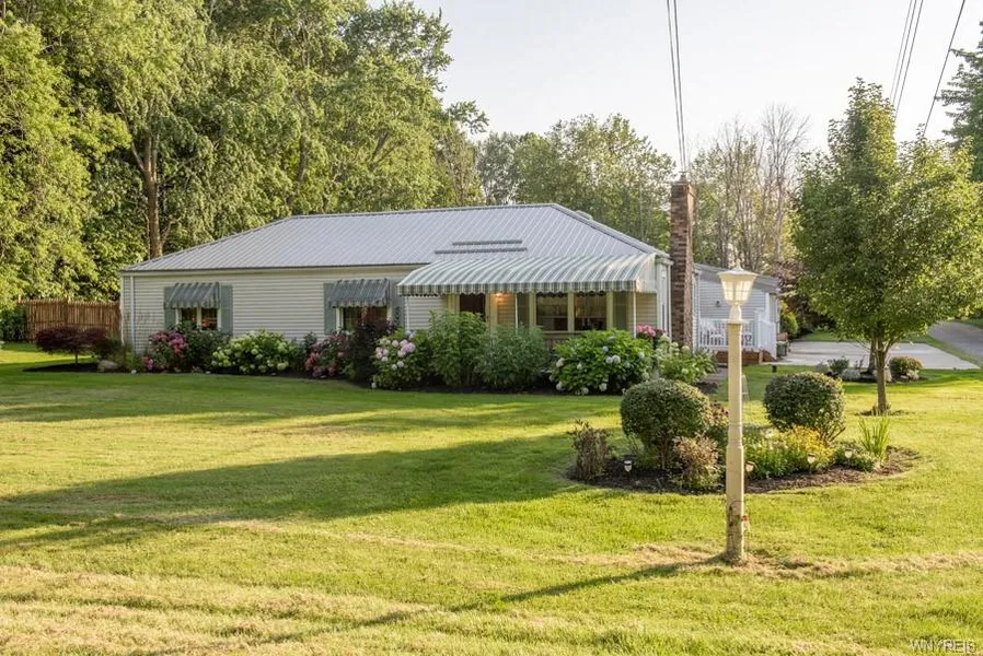 Summer relaxation starts here at 9190 Meadow Lane! Charming 3 bedroom, 2 full bath ranch situated on a private beautifully landscaped 1/2 acre lot, fully fenced with a inground pool! This home has been totally updated and well maintained over the last 10 years. Living room w/ shiplap walls, wood burning fireplace & barn door. Spacious eat-in kitchen w/ granite countertops & appliances included. Bright & airy sunroom leads to backyard oasis or escape to 2 different porches! Large Amish shed & 2nd shed for pool equipment. 2019 Metal roof. Deeded Lake Erie beach rights w/ access a short walk away. Located near all the best Angola has to offer - Evans town park, Turtle Joes, Connors and Grandview golf course! Square Footage differs from Public Record due to garage conversion to sunroom. Showings start 8/8 1-3 Open House. Negotiations begin 8/12 @ 1:00pm.
