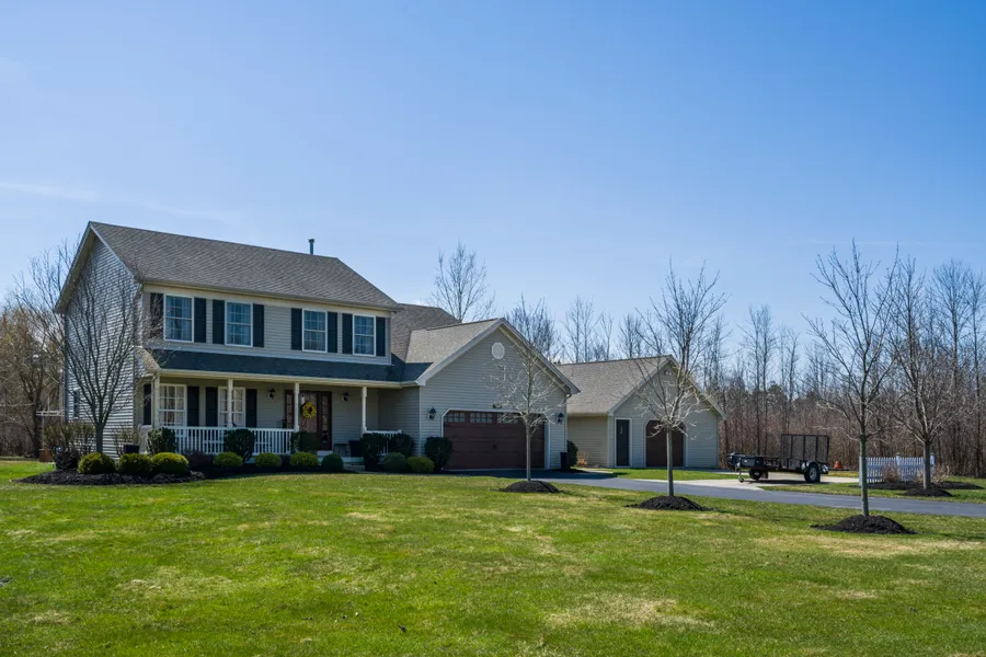 Welcome Home! Immaculate center hall colonial situated on a serene private wooded 12.2 acre lot. This home has been thoughtfully renovated using top quality materials. Please see attachment with list of upgrades. Features include a welcoming stone tile foyer, half bath, 1st floor laundry room, spacious formal dining room, updated kitchen w/stainless steel appliances, quartz counters, natural stone wall w/ built in sideboard, grand family room w/ gas fireplace, custom blinds & pristine hardwood floors. Upstairs find a master suite with vaulted ceiling, his & her closets & a stylish renovated bathroom w/ walk in shower, three additional spacious bedrooms & a full bathroom with bathtub/shower. Full dry basement offers plenty of storage and a workbench. Outside enjoy complete privacy from stamped concrete patio with custom awning. The property includes mature flower gardens, a pergola sittin...