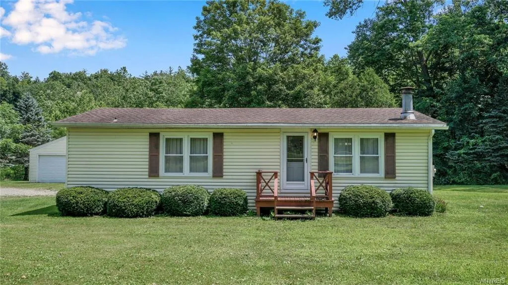 Come enjoy privacy and country living on over 2 acres! Quaint home set far back from the road w/ 2 BR & 2 full baths & open floor plan. Original owner has meticulously maintained the property and pride of ownership shows. Brand new laminate flooring in kitchen and dining area, and brand new carpeting thru out living room and bedrooms. Newer windows, roof 2005, brand new hot water tank. 2 Car garage. Sit on your covered rear porch and enjoy the quiet, with no rear neighbors. Clear Creek runs through the rear of the property! Fish for trout and steelhead right in your own backyard. Maintenance free, move right in! Offers due Friday 7/28 by 3pm.