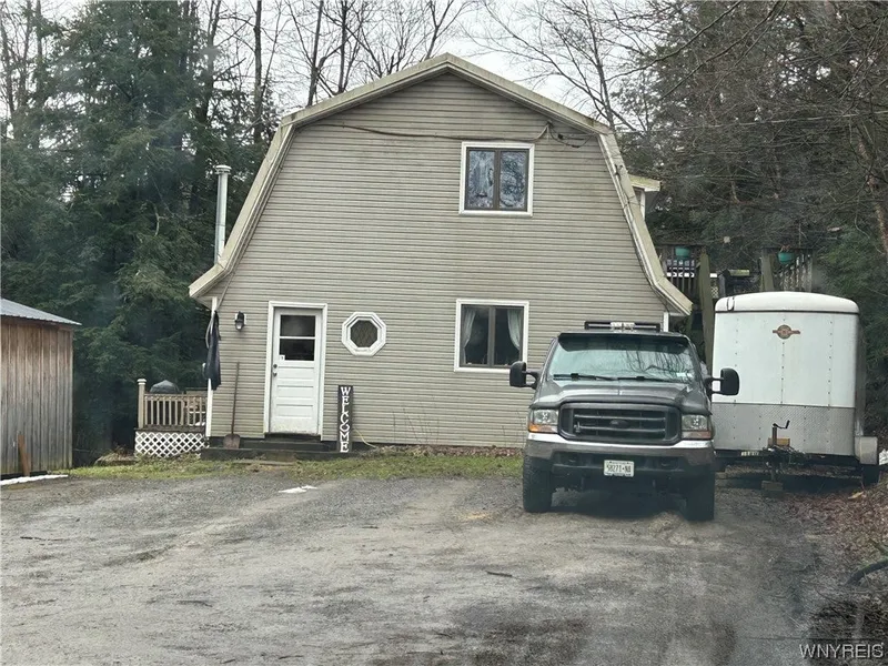 This stunning double-unit home offers both comfortable living and income-generating potential. Lower apartment has has been updated (2018) with new bath, recessed lights, new cabinets, windows, carpets, and flooring. Cathedral ceilings in upper 2 bedroom with recessed lights and newer sliding doors to deck overlooking nearly two acres of wooded land. Separate laundry area in both units. Metal roof. Plenty of parking. New septic system. Month to month tenants, $850 rent each apartment with tenants paying all utilities except public water. Stove, fridge in both apartments included. Microwave in lower unit included. All appliances in as is condition. Don't miss this opportunity to build wealth through real estate and with both units in good condition you can start earning income right away!