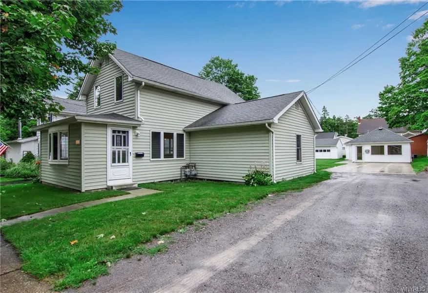 Step into this charming 3 bedroom, 1 bath home with residential-commercial zoning in the heart of the Village of Alden! Whether you enter the home through the front or back entrance, you are greeted by a convenient entryway that adds ease and functionality to your daily routine. The back entrance opens into a practical mudroom with a first-floor laundry area, ensuring that organization and convenience are always within reach. Enjoy the convenience of a spacious primary bedroom on the first floor, complete with ample closet space. First floor features lots of natural light illuminating the open flow from the living room and dining room, a spacious kitchen, and a full bath. Upstairs you will find two good sized bedrooms with ample closet space and built in storage. Zoned for both residential and commercial use, this property includes an office and showroom space in the back, complete with a kitchenette, bathroom, and a full basement for more storage. Whether you're looking for a cozy family abode or a space to seamlessly operate your small business - this versatile property has it all! Showings begin immediately.