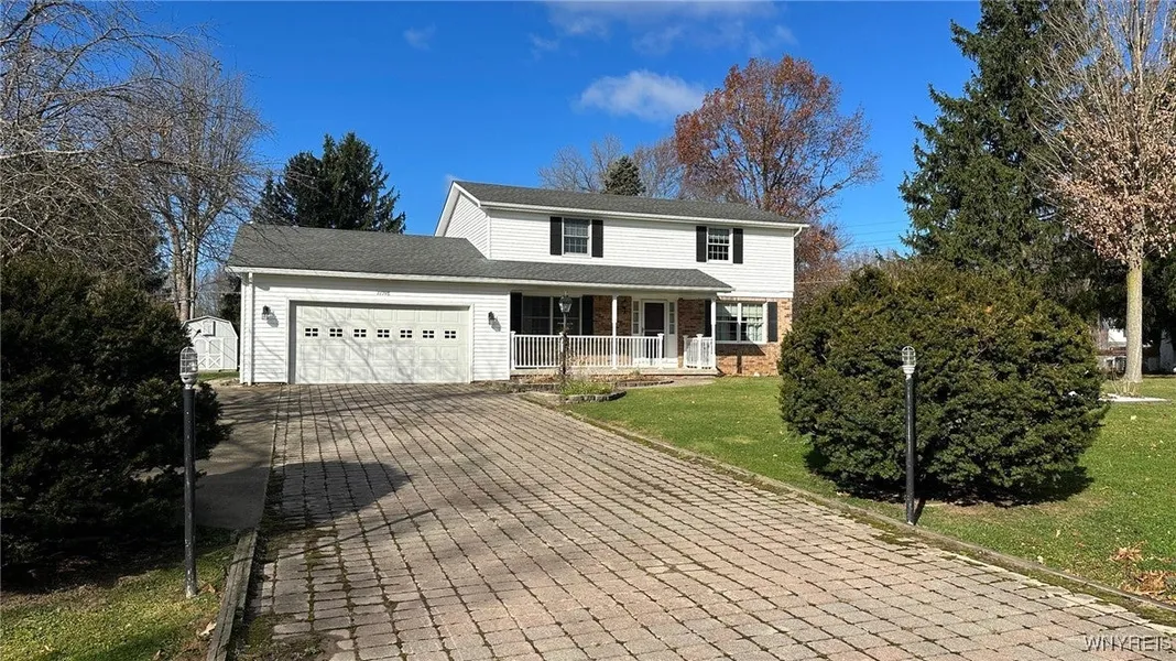 Enjoy Country living, close to everything in this Fantastic 4 bedroom 1.5 bath colonial. Grotto kitchen with built in appliances, large island with double sink. Loads of cabinets, granite countertops, and large eating area. Family room boasts lovely wood burning fireplace to cozy up to. Built in bookcases, gorgeous hardwood floors and large bay window. Front to back, Formal dining room and living room has new laminate flooring, (currently being used as an oversized living room). Garage entry leads to good sized Mud room and 1/2 bath. Hardwood stairs lead to the second floor. Gleaming hardwood floors are throughout the second floor. Primary bedroom has loads of light and large double closets. Large main bath with tub and separate shower. Sliding glass doors from kitchen eating area lead to beautiful screened in rear stamped concrete patio (19x15). Basement has craft/hobby room. Newer windows, roof, siding and drain tile. New air conditioning splits added to the first and second floors. Back yard has large Shed. 1.5 car garage with storage area. Showings begin at the Open House on Sat. 11/16 1-3pm. Offers will begin being accepted after the Open House on 11/16/24