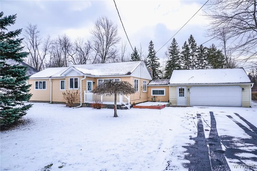 Very well kept ranch style home with a 2.5 car garage on a 1.5 acre lot! The front porch brings you to a vestibule perfect for taking your shoes off and hanging your coat! Living room and dinette area leads to eat in kitchen! 3 bedrooms with an additional sitting room (or 4 bedrooms with an addition of a wall and door)! Back attached heated room could be a family room, or a large dining room! All updated windows except for the bathroom. Wall A/C unit (2020) will stay.