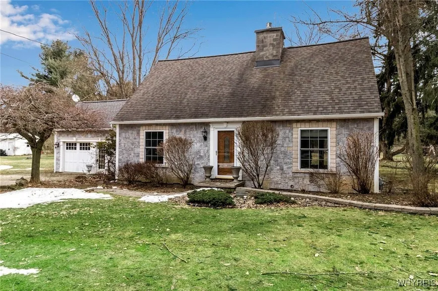 Charming Cape Cod Home in a picturesque setting! Nestled between the hamlet of West Falls and the Village of East Aurora, this delightful 3-bedroom, 1.5-bath Cape Cod offers the perfect blend of tranquility and convenience. Situated on close to 2 acres, the property backs up to the popular Scenic Overpass property on Mill Road, providing private backyard for country living. Step inside to find an updated eat-in kitchen featuring granite countertops, a center island, and all appliances included. Nearby French doors lead to a covered patio, overlooking your deep yard, perfect for entertaining or simply relaxing. The spacious living room highlighted with a central fireplace gives you lots of room. While a formal dining room provide ample space for gatherings, and is conveniently located next to the kitchen. A recently updated half bath on the first floor has room for an added shower if desired, and good sized entry foyer off the attached 1.5 car garage. Upstairs, the large primary bedroom boasts generous closet space, while two additional good-sized bedrooms and an updated full bath complete the second floor. The home also offers a full basement, along with the large backyard to fully enjoy the surroundings. Don't miss this fantastic opportunity to own a home in an ideal location with plenty of charm and updates!