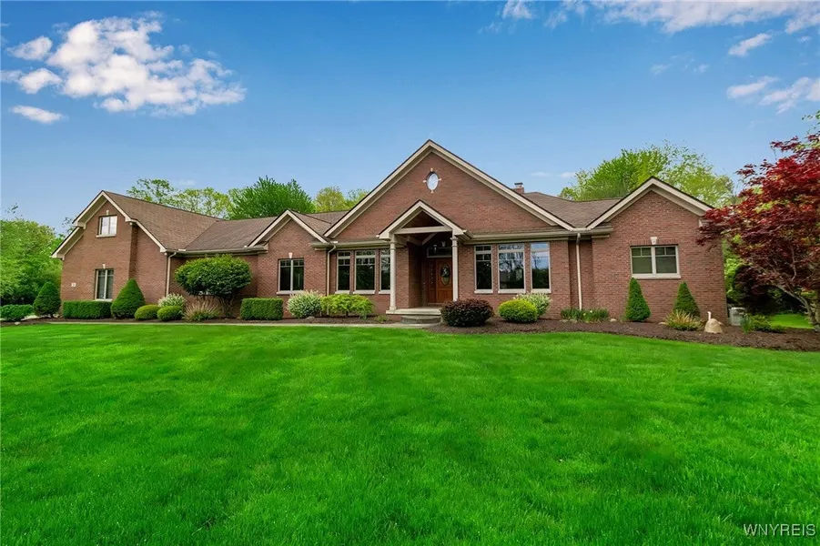 Welcome to Crag Burn Village, one of the premier communities of WNY. 250 Crag Burn checks all the boxes! The private roads of Crag Burn Village wind around the ponds and trees surrounding the Crag Burn Golf Club. This spacious, brick ranch sits on a beautiful lot with a large yard and full landscaping. The property backs up to a state owned forest filled with mature trees and wildlife. Inside this 4 bed, 3.5 bath home you'll find a bright living room with vaulted ceilings and a fireplace, granite-countered custom kitchen, formal dining area, an intimate breakfast nook and a beautiful office with glass French doors. A large en suite offers 2 walk-in closets, a soaking tub, and walk-in shower. Down the hall this home has a half-bath, 2 additional bedrooms sharing a Jack and Jill bathroom, a massive laundry room and a surplus of large closets. Above the garage the home has a 4th bedroom that is the epitome of flex-space and could be used as an office, craft room, guest room, work out room, etc. In the basement, there is over 1000 sq ft of finished living space that can be used in conjunction with the rest of the home or made into a private in-law suite. This space is complete with a comfortable living room with a gas fireplace, a space for a large kitchen, multiple closets, a full bathroom with heated floors and a walk-in shower. The in-law suite also has a private entrance to the attached 1 car garage which sits adjacent to the home's main 2 car garage. With the large ranch footprint, this home has a massive storage space in the unfinished half of the basement. The square footage is based on recent appraisal by licensed appraiser. Above grade sqft is 3109, finished basement is 1083. Negotiations delayed until Tuesday May 27th at noon.