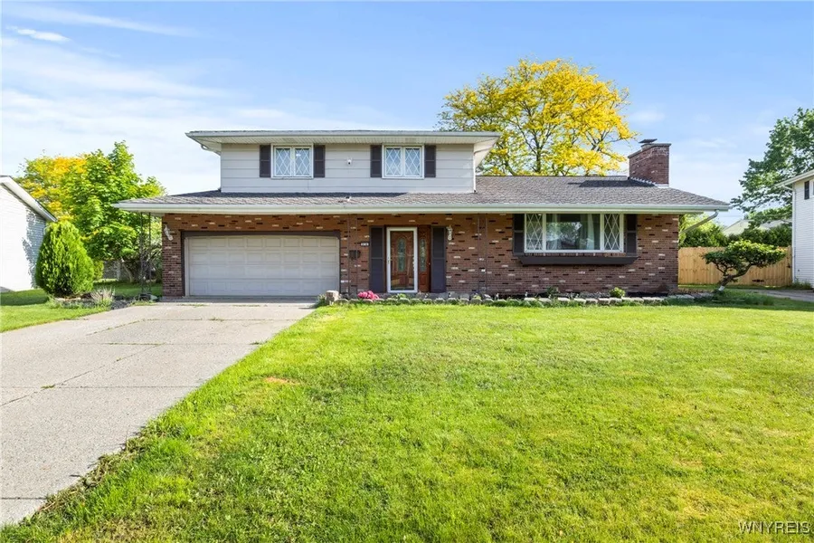 Welcome to 838 Edgewater Dr, a beautifully updated 4-bedroom, 2-full-bath home in the heart of Amherst, filled with modern upgrades and thoughtful touches throughout! This charming residence features gleaming hardwood floors & a spacious layout with both a living room & formal dining room. The cozy electric fireplace with a striking stacked surround adds warmth & character, complemented by newly added recessed LED lighting in both living areas. The brand-new kitchen is a showstopper—boasting white shaker cabinetry, sleek veined countertops, tile flooring, a stylish backsplash, stainless steel appliances (included), recessed lighting & a second electric fireplace. Upstairs, you’ll find three bedrooms & an updated full bathroom. The 1st floor includes the 4th bedroom & another beautifully updated full bath with a standing shower. Enjoy peace of mind with recent updates including a 1-year-old boiler & HWT, newer doors, lighting, & glass block windows. The clean basement, washer/dryer, & freshly redone garage floor with polyurea coating complete the home. Outside, relax or entertain on the new massive covered patio overlooking the fully fenced yard with lush green space. Don’t miss it! Open house Saturday 5/31 11am-1pm and Sunday 6/1 11am-1pm.
