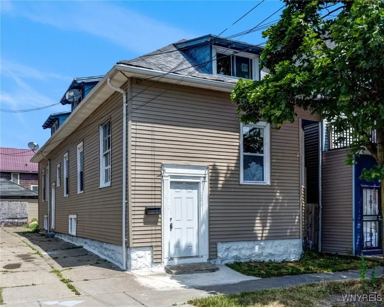 Welcome to 486 Leroy Ave, Buffalo, NY – a beautifully updated single-family home offering comfort, functionality, and modern finishes. The main floor features a spacious layout with 2 generously sized bedrooms, a bright living room, a formal dining area, a renovated kitchen, and a full bathroom—perfect for everyday living. Upstairs, you’ll find 2 additional bedrooms and another full bathroom, providing privacy and flexibility for large families or guests. This home also includes a full basement, offering ample storage or potential to finish for added living space. Outside, enjoy a shared driveway leading to a detached garage, adding convenience and value. Recent updates include brand-new flooring throughout, fresh interior paint, updated bathrooms, and many more modern improvements, making this home truly move-in ready. Square footage is different than tax records please see attached floor plan.