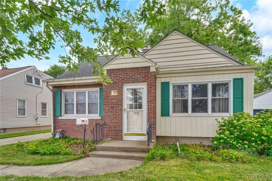 Welcome to 103 Chaplin Drive, a delightful cape cod-style home nestled in the heart of the Town of Tonawanda. This versatile 3-bedroom, 2-bath residence offers spacious rooms and flexible living arrangements, easily functioning as either a ranch-style or two-story home to suit your lifestyle. Step inside to a warm foyer leading to a formal living room and dining area, both featuring cozy wall-to-wall carpeting. The eat-in kitchen, separated by a charming French door and complemented by a built-in butler's space, invites culinary creativity and casual dining. Conveniently located on the first floor are a bedroom, full bath, and a mudroom at the rear entrance. Upstairs, two generous bedrooms with expansive walk-in closets and a second full bath provide comfortable private spaces. Enjoy modern comforts with newer vinyl replacement windows and an efficient air conditioning system. The spacio...