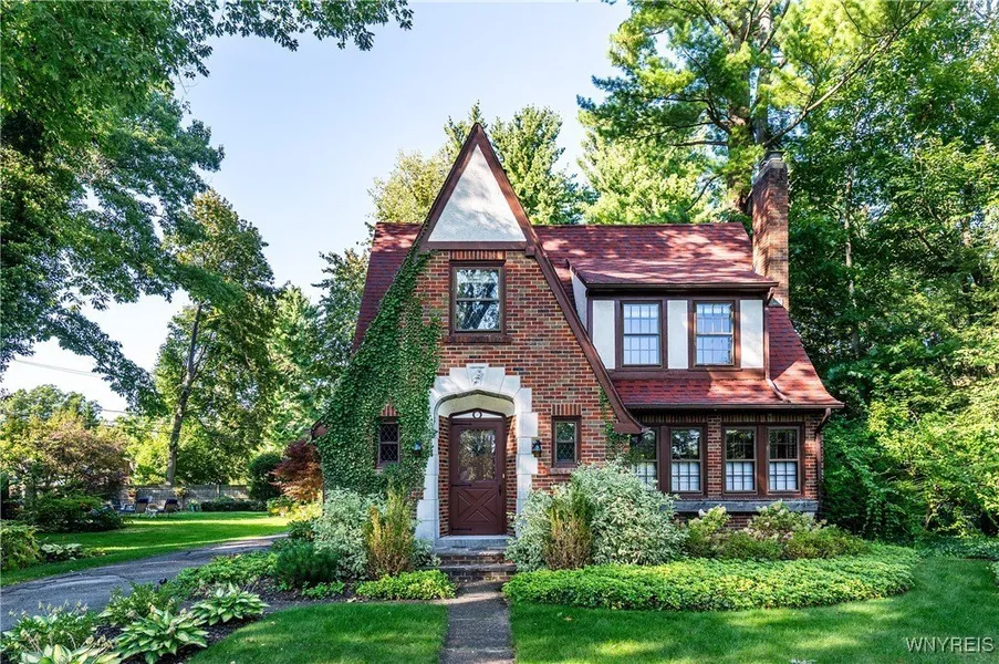 an extraordinary all brick tudor, directly outside the village, on one of hamburg's most desired streets. these don't come up very often! one of the few tudor homes in the area, on windover - a community all its own, makes this house truly one-of-a-kind. memorable 1st impressions through a storybook entrance. magnificent facade adorned w/ timeless + captivating details. charm continues to be defined w/in the walls of this home. through the front door, you're greeted w/ built-in bookshelves, leaded glass windows + original doors. the perfect snapshop of what you'll find throughout. starting w/ the woodwook/trim, which is completely untouched; an anomoly. the living rm is easily enjoyed. wbfp w/ gas starter, striking mantle, refinished hardwood floors + limitless natural light. formal dining could serve as just that, or an alt living space. eat-in kitchen is quaint + cozy, adorned by a bre...