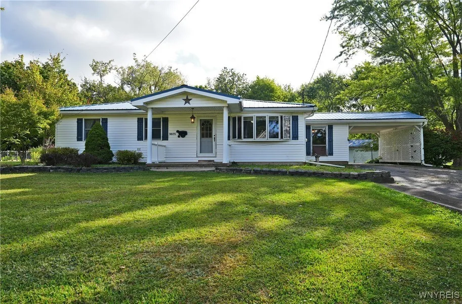 Welcome to this versatile ranch home situated on 1.55 acres, offering 116 feet of frontage on Cain and 344 feet on Hardpan. With 1,944 sq. ft. of living space plus a finished lower level, this home provides plenty of room for entertaining and everyday living. The first-floor features: An oversized eat-in kitchen with abundant counter and cabinet space, refrigerator, gas cooktop, built-in microwave/oven, dishwasher, and trash compactor. A sliding door opens to the carport. A spacious living room highlighted by a bay window and ceiling fan. A primary bedroom with two closets and a private half bath. A generously sized second bedroom and a third bedroom currently used as first-floor laundry. A full bath with ceramic tile flooring, skylight, and walk-in tub. Enjoy two sun porches off the kitchen, each with its own gas fireplace and thermostat: One sun porch includes handrails, French doors, and access to a covered concrete patio with skylights. The other offers wall-to-ceiling windows, a deep storage closet, sink, electric cooktop, mini fridge, ceiling fans, and French doors to the backyard-perfect for gatherings. The finished lower level expands your living space with a family room, full kitchen, laundry room with hookups, an additional finished room, and storage/mechanical areas. Additional highlights: Newer metal roof, boiler, and water heater (2019) Detached 2-car garage, shed, and fenced-in area Versatile outbuilding with kitchenette, built-in gas grill, shower, and toilet Circular driveway providing plenty of parking Pull-down stairs for attic storage. This unique property is full of potential and ready for its next owner-bring your imagination and make it your own!
