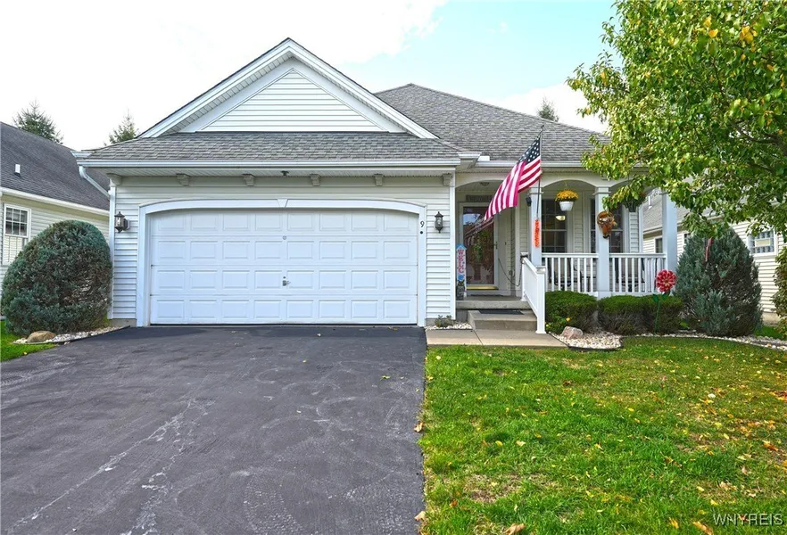 Burchfield Village Patio Homes, a private Patio Home community, is open to you... welcome to 9 Winfield. Situated in a quiet neighborhood, on a serene wooded lot and backyard, which you will experience with grace and comfort off your new deck, covered by a beautiful Kohler Awning. The newly added gutter guards will give you peace of mind throughout the years to come. Pull right in your attached 2 car garage to keep that upcoming snow off your vehicle(s). The driveway is expansive enough to host your friends and family, but if not, extra parking spaces are conveniently offered right across the street. Inside the grand ceilings and foyer make the 1626 square foot Patio Home feel even more spacious. The cathedral ceilings follow through the Living and Dining Rooms that are off the kitchen. The Kitchen boasts quartz countertops, with space to have that morning coffee or anytime meal. The bonus room in the loft area features ample closet space, which can easily be converted to a 3rd Bedroom, or leave as is and make it that office space for those who work from home. The rest of the 1st floor features the 2 good-sized Bedrooms with closets, and your laundry space. The owner's suite Bedroom looks into the private back wooded yard. The full basement is the perfect space for additional living, or to place your storage items. The HOA covers your outside responsibilities, making 9 Winfield an even more easy decision for you. With no offer deadline in place, this 2006 build Patio Home beauty is available now to make your next home!