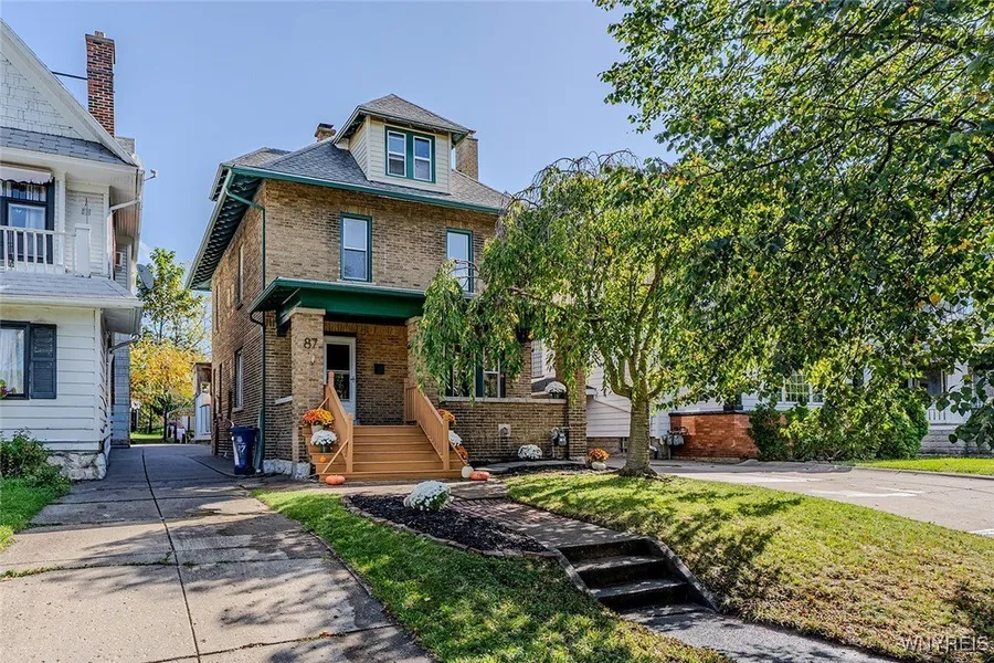 Stunning All-Brick Craftsman Four-Square in the Heart of North Buffalo! You can't get any closer to the action - just steps from North Park Theatre, shops, local cafes, and some of Buffalo's best restaurants. This rare gem is the only single-family home between Hertel and Linden, boasting one of the largest backyards in the neighborhood! Freshly painted throughout, this timeless home showcases rich oak woodwork, refinished hardwood floors, and sun-filled rooms with 9-foot ceilings. The inviting living room with a wood-burning fireplace flows seamlessly into a formal dining room accented by stunning built-ins. A bonus room offers the perfect space for a library or reading nook, while a convenient half bath adds functionality to the main level. The spacious first-floor kitchen, featuring stainless steel appliances, opens to a freshly painted oversized deck overlooking the expansive backyard - ideal for entertaining or relaxing outdoors. Upstairs, you'll find four bedrooms and a beautifully updated oversized full bath. One bedroom enjoys its own private porch, the perfect spot for morning coffee or evening relaxation. The third-floor walk-up attic offers endless possibilities - finish it into a home office, playroom, or additional living space. Additional highlights include three porches, a full basement with 8.5-foot ceilings, glass block windows, ample storage, gas and electric dryer hookups, and garage. Major updates include: double hung windows, chimney liner (2019), hot water tank (2017), furnace (2013), driveway (2015), porch refinishing (2025) Open Houses: Wednesday, October 15 | 5-7 PM and Sunday, October 19 | 1-3 PM Seller has chosen to set an offer deadline for MONDAY 10/20/2025 AT 5PM.
