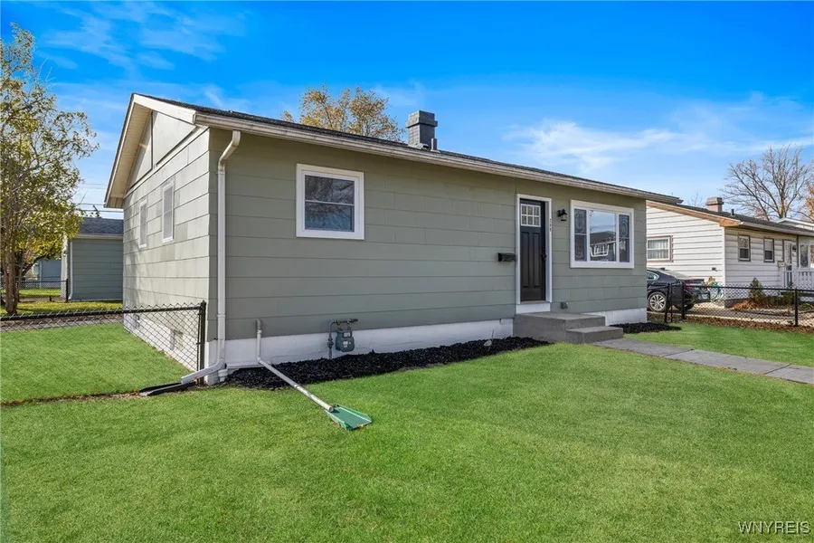 Fully renovated 3-bedroom, 1-bath ranch in Tonawanda offering true move-in readiness. The home features a brand-new kitchen with fresh countertops, new cabinets, new flooring, new light fixtures throughout and new carpeting in the bedrooms. The bathroom has been completely remodeled with clean, modern finishes. Major improvements include new structural steel, updated electric, new drain tile in the basement, a hot water tank (2025), and central air for year-round comfort. Exterior upgrades include newly poured front steps, a new concrete walkway, a refreshed rear walkway, and freshly planted grass. A detached 2-car garage completes the property, providing valuable storage and parking. Do not forget about the massive detached garage, perfect for storage or an at home workshop. Fully updated home near schools, shops, and easy access to the thruway for added convenience.