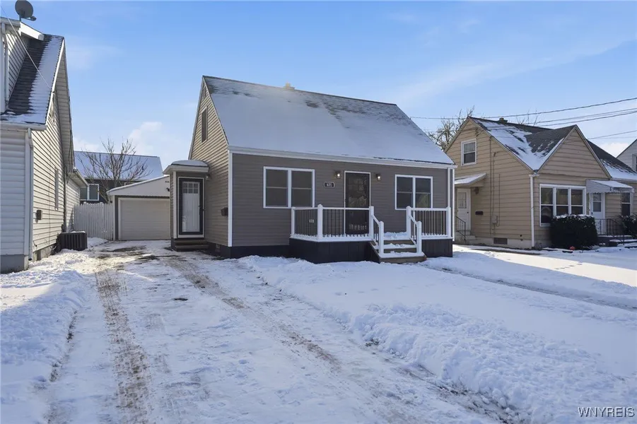 Welcome to 631 Saint Lawrence Avenue! This beautifully renovated 2 bed,1 bath in North Buffalo's North Park/Starin neighborhood offers a complete top-to-bottom transformation blending super modern finishes with solid mid-century construction. The home has a manageable size, inviting layout, and solid footprint along with a desirable first-floor bedroom and first floor full bath, allowing the home to function very much like a sought-after ranch. The spacious, fully modernized kitchen features granite countertops, soft-close cabinetry with brushed-nickel hardware, and SS appliances-including a dishwasher, over-the-range microwave, and five-burner gas stove-all included. The home's 2nd bedroom is upstairs and offers a spacious, private living area with ample storage, cozy nooks, and a versatile landing that can function as additional massive closet space, a reading corner, or a small office area-making the entire upper area feel like its own retreat. The updates continue with new entry doors, storm doors, and all-new vinyl windows that bring abundant natural light into every room, while adding energy efficiency. Tying altogether is recessed lighting in every room, sleek black hardware, bright fresh trim, and new LVP flooring throughout the entire home, including the partially finished basement. The full basement includes laundry hookups, brand-new 50-gallon HWT (upgrade from standard 40-gal), updated 150-amp electrical service ('23), and HVAC ductwork that has been thoroughly cleaned by Stanley Steemer ('25) for optimal indoor air quality. Outside has new, maintenance-free vinyl siding and a welcoming front porch features maintenance-free vinyl railings and composite decking, along with a fully fenced yard. A one-car detached garage includes updated electric, power opener and add'l storage/workspace. Complemented by insanely affordable City of Buffalo property taxes, this home offers exceptional value for anyone seeking a turnkey property with thoughtful and carefully executed updates throughout. Open houses Sat 12/13: 1p-3p and Sun 12/14: 11a-1p. Seller reserves the right to set an offer deadline. Showings begin at Saturday's public open house 12/13: 1pm