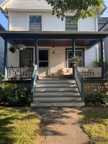 Beautiful Parkside single-family home just steps from Darwin Martin House, Buffalo Zoo and Delaware Park! Enjoy a large dreamy front porch and backyard, plus a newly renovated bathroom featuring a walk-in shower and soaker tub. The kitchen is nicely updated and includes appliances. Natural woodwork and hardwood floors throughout, with high ceilings and great natural light. Bedrooms have ceiling fans and the home is well insulated. Basement has laundry and plenty of storage space. Spacious primary bedroom and large closets. Solar panels help keep the monthly electric bill very low. Internet included! No pets. Available for move-in by January 15.