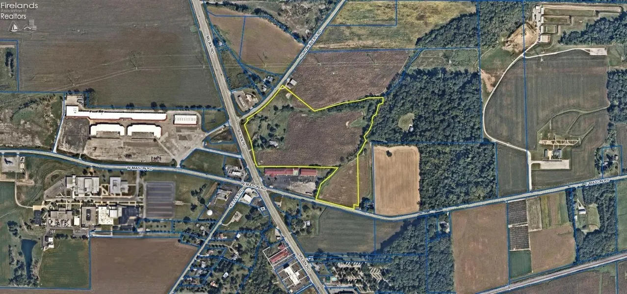 18 +/- acres of remaining 28 acres. Commercial zoning with frontage on Milan Rd, Huron Avery Road & Mason Road. All utilities are available for tap-in. Erie county water is currently connected to the house(11004 Milan Road) and sewer is available for tap-in. Tap-in fee prices to be obtained from Erie County Environmental Services. Sale includes house. Value is in the land. Subject to CAUV recoupment if not used for agricultural purposes. Erie county sewer easement along Huron Avery road and State of Ohio channel easement (creek). Seller to retain right of crop removal. Survey to be provided at point of accepted contract. Listing agent is related to co-owners of the property.