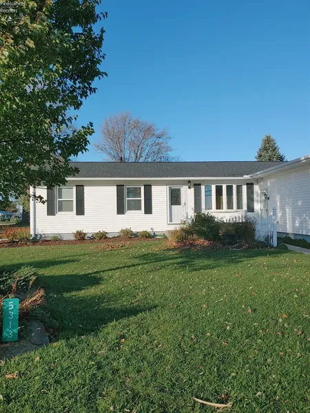 Three bedroom Castalia ranch home on .41 acre lot with 2 car attached garage! The large kitchen features flowing wood floors, floor to ceiling wood cabinets with an abundance of storage and bright recessed lighting throughout. Off of the kitchen is the living room with wall to wall carpet. Also on the main level is an additional family room. All three bedrooms are on the main level and there is a bright sunroom as well! Off of the sun room is a large poured patio perfect for enjoying your scenic views. There is a large storage shed outside also.