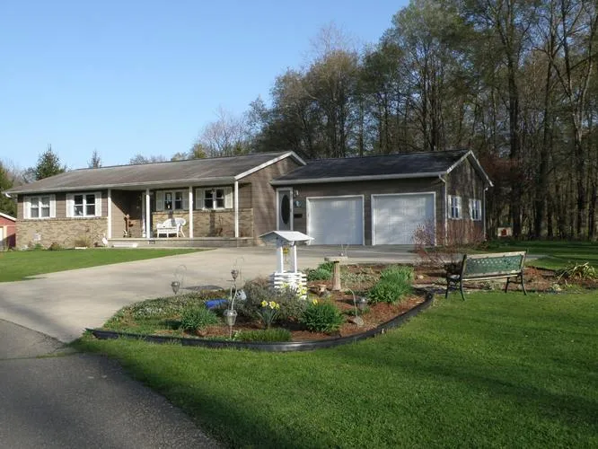 On over 1/2 acre, sitting up on a hill, you feel like you are secluded from the rest of the world! Home has 3 bedrooms, with everything imaginable new! Furnace, Hot water, vinyl windows, vinyl shaker style siding, cement patio and cement driveway are all new within the last 3-5 years. So much potential for the lower level, which even has a root cellar. Above ground pool - outbuilding and landscaped yard. Call today - this 1 story ranch won't last long!