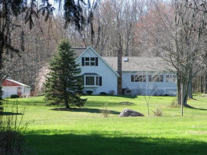 Greene Township, PA - Secluded setting on over 25 acres hidden from the road, with woods behind home, beautiful landscaping, plus open pasture area with small lean-to for your horses. Home completely updated with gorgeous wood throughout, large rooms, 1st floor master with closet space galore, woodstoves in living and family rooms, and a huge 2 story garage (52' x 30') for all your cars, boats and toys and it even has a small kitchette ready to entertain. This 3 to 4 bedroom home offers plenty of space, all appliances stay and a huge wrap around enclosed porch to relax on and watch all the wildlife. Call today!