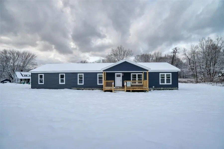 Newly built, this beautiful 3-bedroom, 2-full-bath manufactured home sits on a spacious 1-acre lot and features an over-sized 1-car attached garage. The inviting open floor plan includes an eat-in kitchen with stunning cabinetry, attractive countertops, a tiled backsplash, a center island, and stainless steel appliances. The kitchen flows seamlessly into the dining area and living room, creating the perfect space for everyday living and entertaining. The primary bedroom offers a walk-in closet and an ensuite bath complete with dual sinks and a spacious shower featuring a relaxing rain shower head. Beautiful flooring and stylish light fixtures run throughout the home, adding warmth and modern appeal. Enjoy quiet mornings or peaceful evenings on the covered front porch, and make the most of the outdoors with sliding doors from the dining area that lead directly to the backyard. This property blends comfort, quality, and contemporary design in an ideal rural setting.