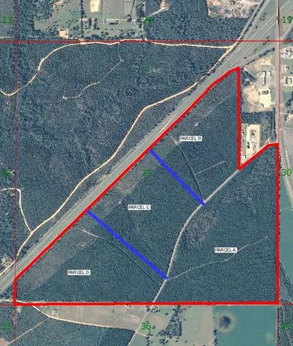 REDUCED!! Nice 56+/- acre property - Parcel B -with country road frontage with high visibility on Interstate 65 at Exit 69. Additional land available. The property lays nicely and could be used for hunting, recreational tract or let the timber grow for a future investment. Excellent commercial property value!