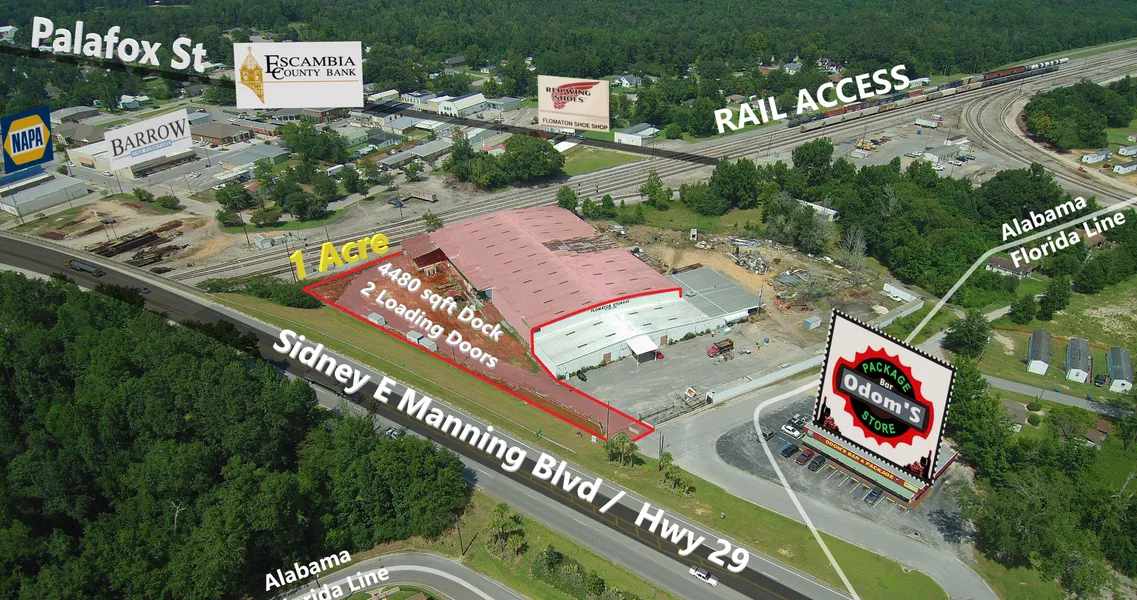 FLOMATON, AL- This 45,900 sqft warehouse on 1 (+/-) acre is located adjacent to the AL/FL line and Century, FL. Seller is dividing this building, selling the back section separate from the front section..does not need the back section which is used for storage. The property is convenient to major highways, interstates, railways, shopping and downtown Flomaton. Open Storage for any type of storage your company needs. The building has 22 ft (+/-) eave height, and a 4480 sq.ft. loading dock with (2) dock roll up doors. One door is 10'x10', the other is 16'x16' and there is also a walk-through door that is 3'x7'. The warehouse adjoins a successful business, Flomaton Storage, which guarantees traffic. (Flomaton Storage is not included and will operate separability.) The North end of the property backs up to a railroad track. The South border of the property is the Florida line. Prime location on US Hwy 29/Sidney E Manning Blvd, a four lane hwy which joins Alabama and Florida line. Nested between I-65 (15 mi) and I-10 (40 mi). The property is unzoned so building can be utilized for any type of use. Flomaton is in ideal proximity to the gulf beaches, fishing and hunting and The Flomaton Speedway. The neighborhood is made up of a mixture of properties including retail stores and shops, professional businesses and offices, light industrial facilities, banks, schools, fast food franchises, restaurants, churches and residential homes. Surrounding communities is Century, FL and Atmore, AL are teaming with opportunity and growth. Join the AL/FL line boom! Call now to put in your offer!