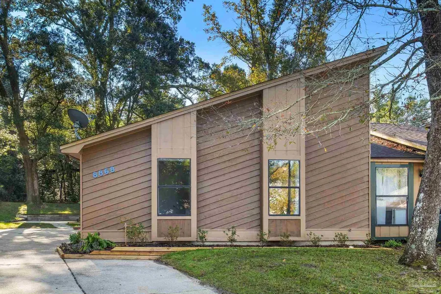 You'll feel at home when you pull up to this adorable, move-in-ready townhome in Pensacola. This 3 bedroom, 2 bath end unit is located on a cul-de-sac street just off Davis Hwy within walking distance to West Florida Hospital and just a 5-minute drive to UWF, making it the perfect primary home or investment property. As you arrive, you will notice the beautiful mature landscaping and oak trees that provide plenty of shade. There is plenty of parking space for you and your guests in the long extended driveway, which leads right up to the front porch. Double French doors welcome you inside, where you'll find an open floor plan with tile flooring throughout the main living spaces and all wet areas. Soaring vaulted ceilings in the living area make this home feel much more extensive than its square footage. Enjoy cozy evenings around the wood-burning fireplace, which is the focal point of this room, with built-in cabinets on either side. The kitchen is perfect for the chef in your family, with stainless steel appliances, plenty of cabinets and countertop space, and a center island with extra seating. Just off the kitchen is the convenient indoor laundry room, with a tall pantry cabinet for even more storage and access to the backyard. Down the hall, you will find the 3 bedrooms with brand-new carpet and 2 full baths, which both have newer vanities and tiled showers. The master bedroom has an en-suite bath, a spacious closet, and a new ceiling fan. Step outside and find a concrete patio, a big backyard, and a storage shed with plenty of space for your lawn and gardening tools. This home truly has it all in a central location in town, so check out the 3D tour and floor plan, and schedule your private showing today before this one's gone!