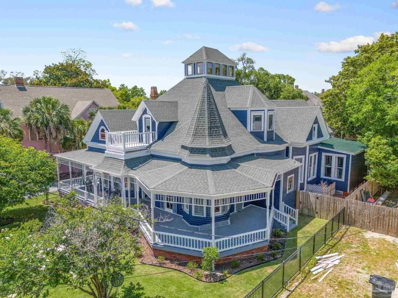 NEW ROOF to be installed!! This home recently appraised for $1,250,000! This gorgeous 6 bedroom 4 bathroom Queen Anne home is listed below appraised value with fresh sod & newly landscaped with grass lighting & front & back irrigation, newly installed front yard decorative aluminum privacy fence & a termite bond. In the heart of the historic district, T W Finch House is a piece of Pensacola history. This home has been beautifully restored to offer many modern amenities while keeping its historic beauty. Some of the updates include new house paint & trim, remodeled bedrooms, privacy fence to name a few. This home can be used as an Airbnb, bed & breakfast or rented out to multiple tenants as there are 4 electrical meters. When you walk into the home, you are greeted with a 30' long entrance way of magnificent one of a kind wood artwork, 13' ceilings, & wainscot finished & arched walls. From the stained heart of pine wood floors, to the bead board wood walls, soaring ceilings, large hand detailed trim, & the craftsmanship in this home is a MUST SEE! Some of the unique amenities include: formal sitting room, original stained glass windows and doors, skylights, decorative coal fireplaces, multiple porches, sun room, hidden alcoves, bay windows, & a spiral roof. Located in the heart of downtown this property is a staple in Pensacola and has been the envy of homeowners for over a century. This home has 3 kitchens & a butler's pantry. From the Widow's Peak on the 3rd floor you can catch a view of the bay or gaze at the stars. Built on three lots, the spacious, fenced backyard provides for lots of parking & the deck in the back and wrap large porches in the front allow for lots of outdoor living space. The home has been featured many times in magazines & newspapers for its unique Queen Anne style & documentation of this home is archived with the Library of Congress. Enjoy all the modern conveniences while relaxing in this beautifully partially restored mansion!!