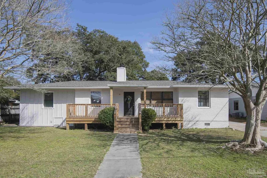 Located in desirable East Pensacola Heights, just blocks from Apple Market, Exchange Park and several restaurants and local stores. This 3 bed, 2 bath home has lots to offer. Beautiful oak floors throughout. Wood burning fireplace in center of home add charm and operates the living room from the dining and kitchen. Renovated spacious detached garage features a mini split allowing for extra space for workout equipment or studio. New exterior paint. Brand new out door breaker panel. BRAND NEW AC. Roof and hot water heater just two years old. Split floorpan with a large master suite. Guest bath recently renovated. Very easy showing to call today!