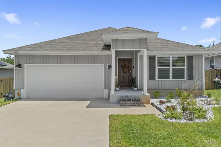 Don't miss this beautifully maintained 4-bedroom, 2-bath home offering over 1,700 sq. ft. of modern living space! Built in 2023, this home feels like new and includes the benefit of all builder warranties transferring to the new owner. Take advantage of a low assumable interest rate for qualified buyer—an incredible opportunity! Centrally located with easy access to I-10, this home is just minutes from shopping, dining, Navy Federal, and the Fairgrounds. You'll be greeted by attractive landscaping as you approach the home. Inside, a welcoming foyer leads to three spacious guest bedrooms and an open-concept kitchen—perfect for entertaining. The kitchen flows seamlessly into the living area, creating a bright and airy space for gatherings. The primary suite is conveniently located just off the living room and features a generous walk-in closet. Call today to get a personal tour of this lovely home.