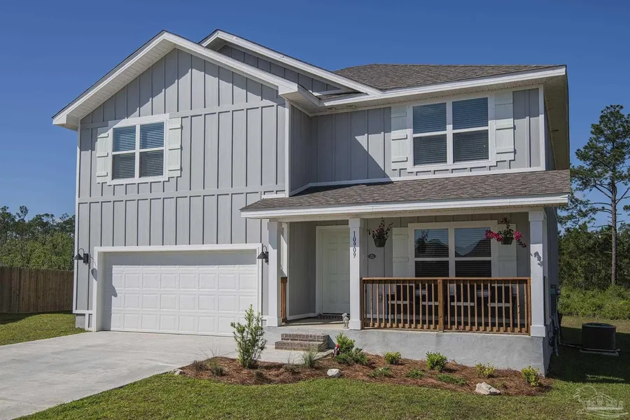 This spacious 5-bedroom, 3-bathroom home offers 2,628 square feet of modern living in the prestigious Reserve at Deer Run community. Built in 2022, this stunning home combines contemporary design with low-maintenance living and lower insurance costs. Nestled on 0.28 acres overlooking a serene pond, it provides a peaceful retreat while offering convenient access to 9 Mile Road, I-10, shopping, hospitals, schools, restaurants, downtown Pensacola, and Pensacola Beach. Designed for both comfort and functionality, the home features an open-concept living area that seamlessly blends the living room, kitchen, and dining space—perfect for entertaining. A bonus room with a full bath downstairs adds versatility, ideal for guests, a home office, or a playroom. Upstairs, you’ll find four additional bedrooms, two full baths, a laundry room, and a spacious common landing area. Additional features include a whole-house water filtration system, ample storage, and an attached 2-car garage. As part of Reserve at Deer Run, residents enjoy exclusive community amenities, including a pool, cabana bath house, grilling area, and underground utilities. If you're searching for a large, modern home with premium features in an excellent location, this is the one for you. Don’t miss your chance—schedule a tour today!